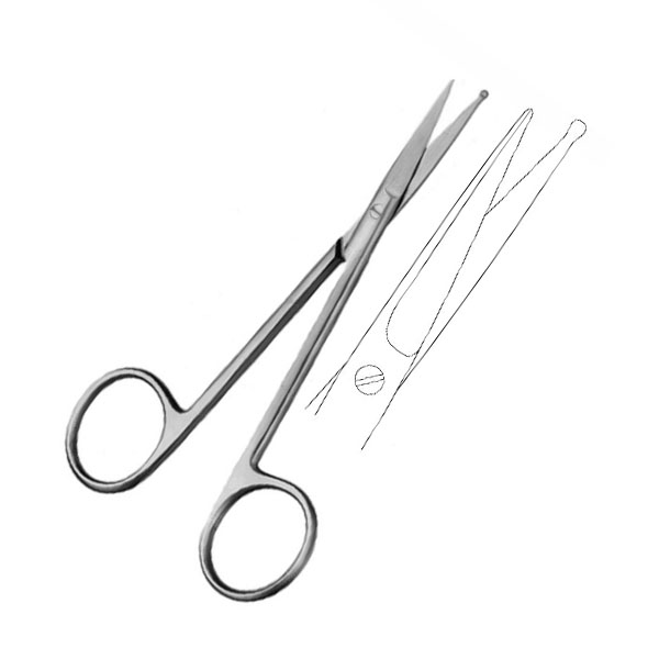 PERWITZCHKY VASCULAR SCISSORS, STRAIGHT, Ball tip on one blade