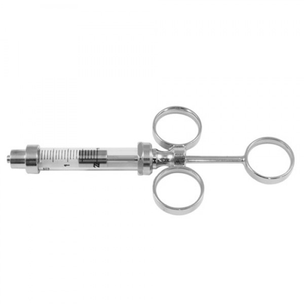 3 Ring Hypodermic Syringe Glass Barrel - With Luer Lock Connection - Moveable Rings Stainless Steel, Capacity 5 ml